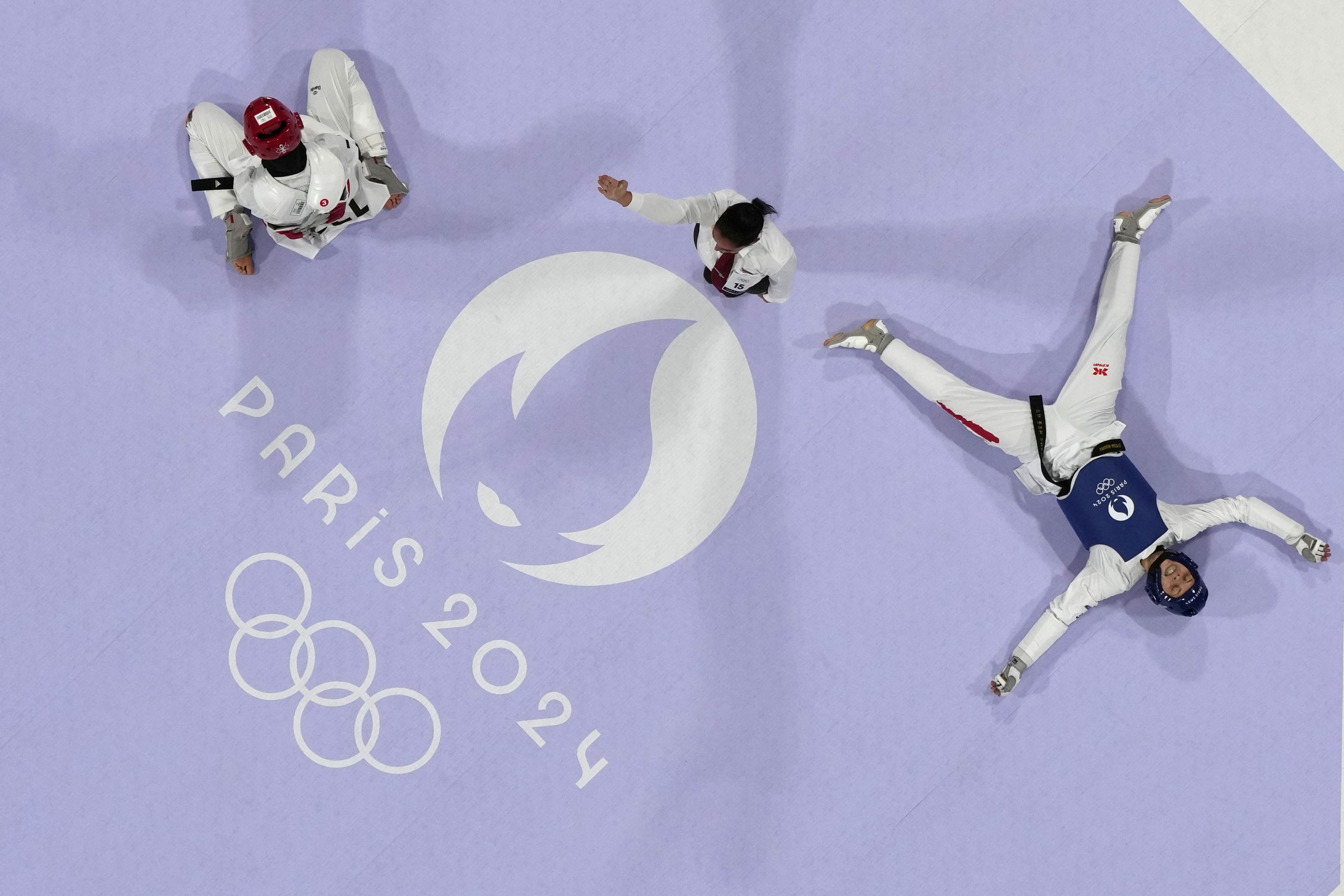 Hungary's Viviana Marton (right) reacts after winning the women's 67kg Taekwondo semi-final match against Belgium's Sarah Chaari during the 2024 Paris Olympics on Aug 9. (AP Photo/Andrew Medichini)