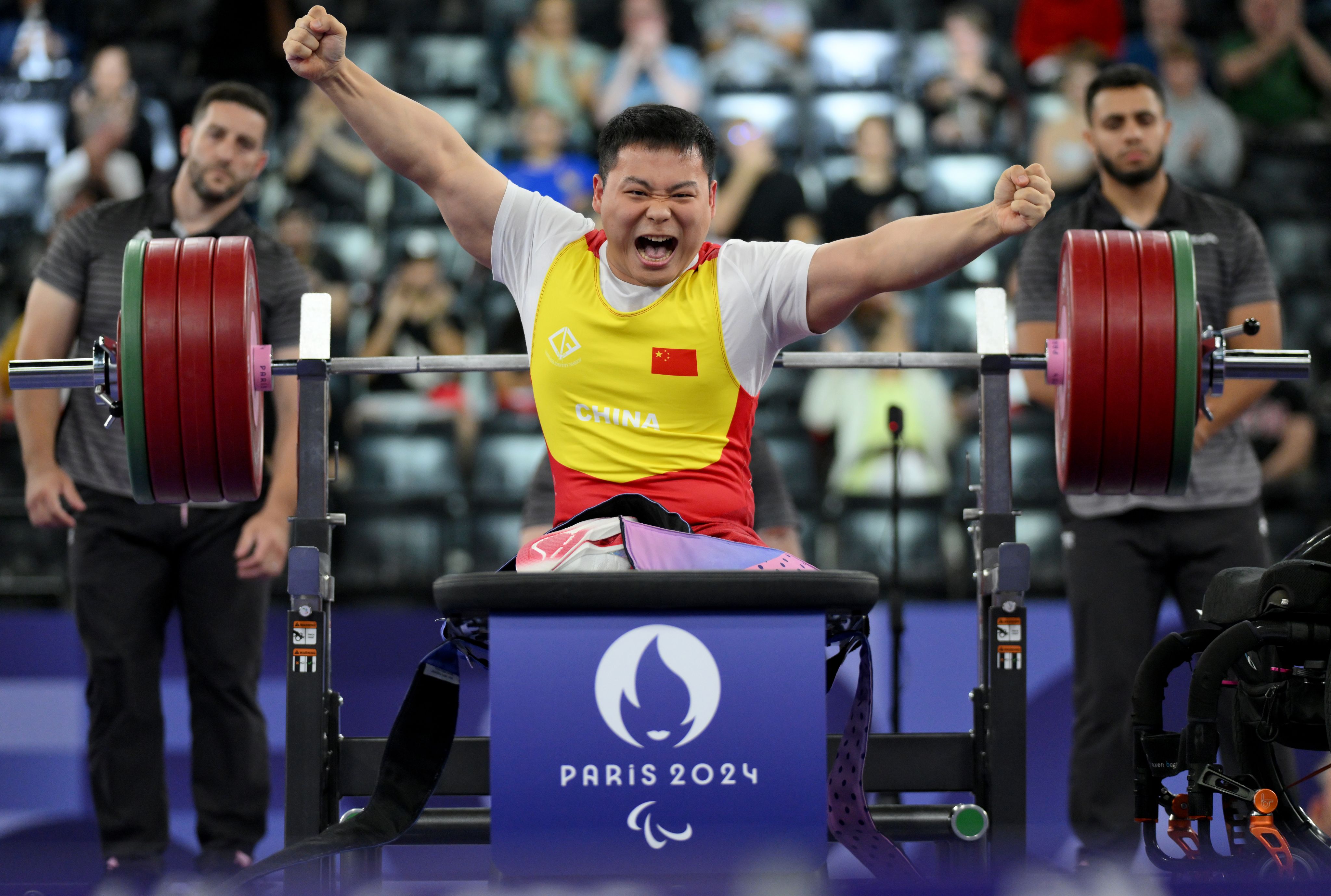 China's Yongkai Qi celebrates during the Men's up to 59KG Final on day eight of the Paris 2024 Paralympic Games on Sept 05. (Photo by David Ramos/Getty Images)