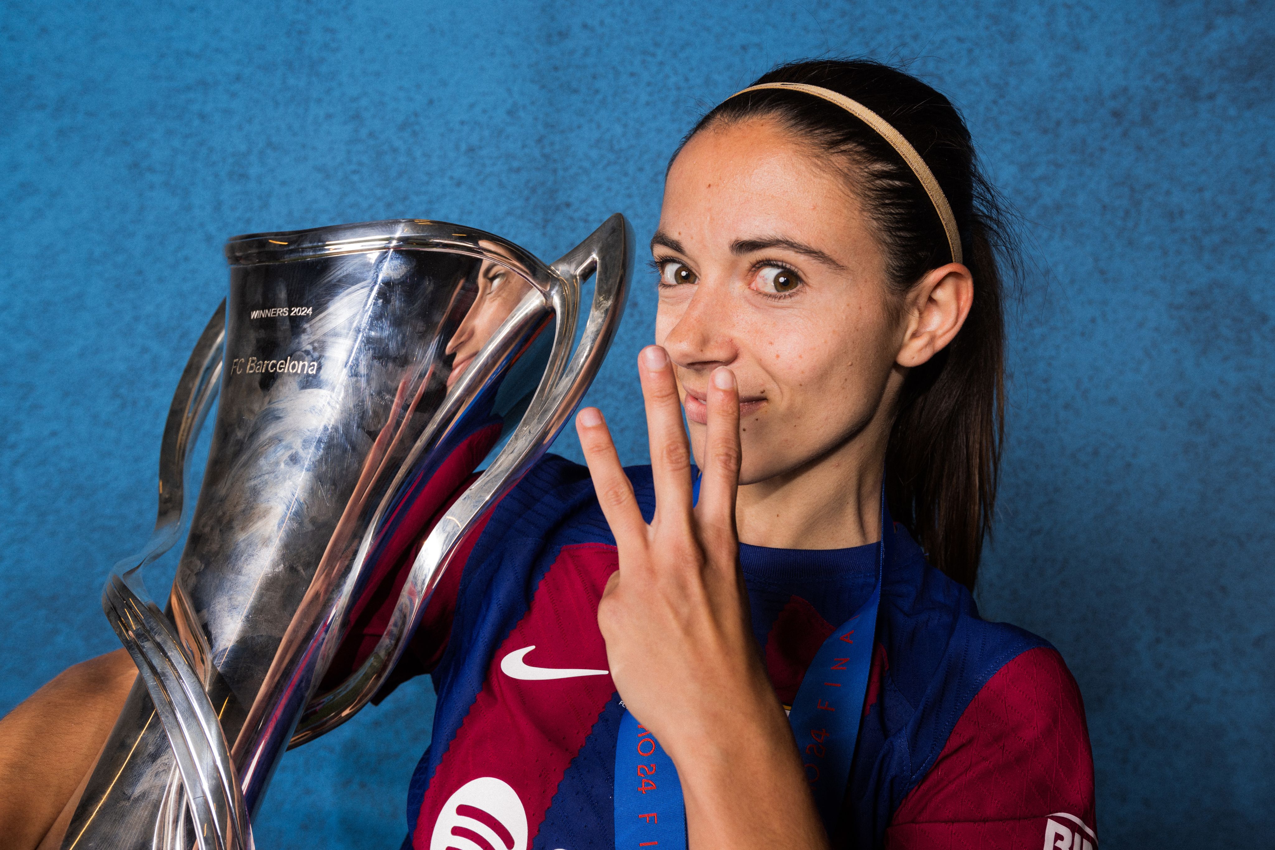 Barcelona and Spain midfielder Aitana Bonmati poses for a photo with the UEFA Women's Champions League Trophy after victory in the 2023/24 Final against Olympique Lyonnais on May 25. (Photo by Florencia Tan Jun - UEFA/UEFA via Getty Images)